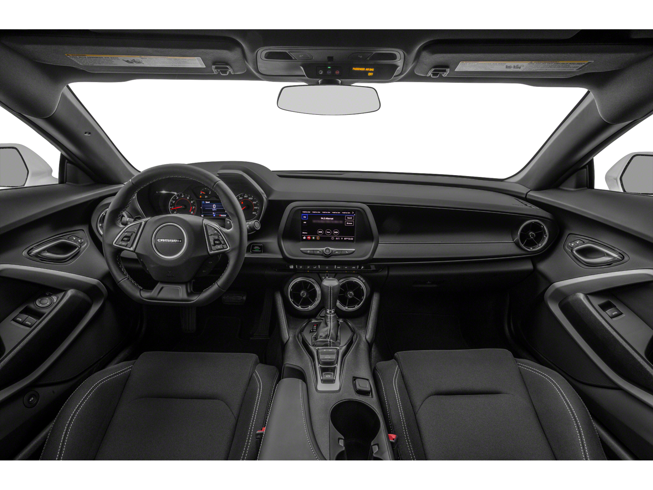 RS Package: Dark Tint LED Tail Lamps. Shock and Steel Special Edition with Shock: Black Fuel Filler Door; 20" Blade Design Aluminum Wheels; Body-Color High-Wing Spoiler; Premium Carpeted Floor Mats with Camaro Logo; Yellow-Painted Calipers; Black Sueded Knee Pads; Carbon Fiber Instrument Panel Molding; Brembo 4-Piston Front Performance Brakes; Spoiler Stripe; Carbon Flash-Painted Outside Mirrors. Preferred Equipment Group 3LT. Power Sunroof. Dual Mode Exhaust. Body-Color High-Wing Spoiler. Chevrolet Infotainment 3 Premium System Radio. Black Sueded Knee Pads. Black Fuel Filler Door. Premium Carpeted Floor Mats with Camaro Logo. Decklid-Mounted Lip Spoiler. Front License Plate Bracket. **Equipment listed is based on original vehicle build and subject to change. Please confirm the accuracy of the included equipment by calling the dealer prior to purchase.**
