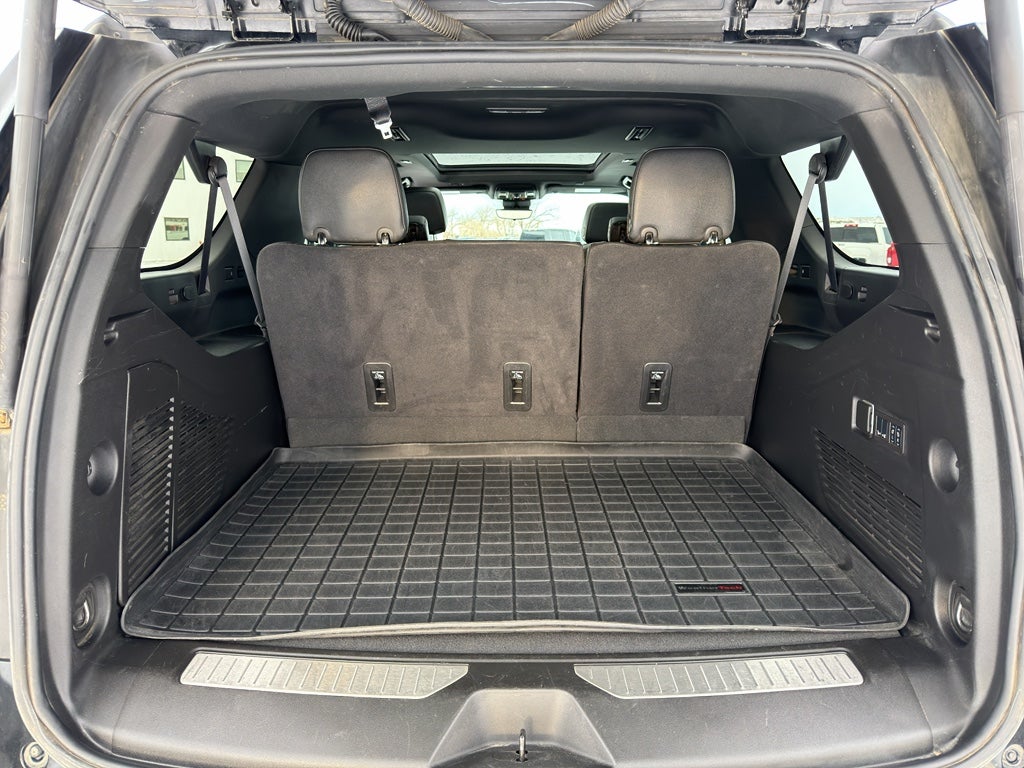 Advanced Trailering Package: Trailer Side Blind Zone Alert; Smart Trailer Integration Indicator; Integrated Trailer Brake Controller; Hitch View with Pan/zoom Image Adjustment. Max Trailering Package: Extra Capacity Cooling System. High Country Deluxe: Dual-Pane Power Panoramic Sunroof; Air Ride Adaptive Suspension; Power-Retractable Assist Steps. Preferred Equipment Group 3LZ: Bright Front and Rear Door Sill Plates; Memory Settings; Perforated Leather Seating Surfaces; 12-Way Power Driver and Passenger Seat Adjusters; Remote Start; 3rd Row 60/40 Power-Folding Split-Bench; Safety Alert Seat; Chrome Door Handles with Body-Color Strip; Hill Descent Control; 6.2L EcoTec3 V8 Engine; Rear Camera Mirror Washer; Inside Rearview Auo-Dimming Rear Camera Mirror; Heated Steering Wheel; LED Daytime Running Lamps; Rear Cross Traffic Alert; Wheels: 22" X 9" Sterling Silver Premium Painted; Driver and Front Outboard Passenger Airbags; Heated Driver and Front Passenger Seats; Wireless Charging; Front Bucket Seats; Adaptive Cruise Control; Universal Home Remote; Color-Keyed Carpeting Floor Covering; Heated 2nd Row Outboard Seats; Hands-Free Rear Power Programmable Liftgate; Chevrolet Infotainment 3 Premium System Radio; 2-Speed Active Electronic Autotrac Transfer Case; 1st and 2nd Row Color-Keyed Carpeted Floor Mats; Enhanced Driver Information Center; Floor Console; Lane Change Alert with Side Blind Zone Alert; Dual Exhaust System; SiriusXM with 360L; HD Surround Vision; Perforated Heated and Ventilated Seats; Wrapped Steering Wheel; Power Tilt and Telescopic Steering Column; 15" Diagonal Multi-Color Head-Up Display; Rear Pedestrian Alert; Bose 10-Speaker Surround with CenterPoint; Magnetic Ride Control Suspension; Infotainment Display; Power Release 2nd Row Bucket Seats; Enhanced Automatic Emergency Braking; 275/50R22SL AS BW Tires; Outside Heated Power-Adjustable Mirrors. Power-Retra